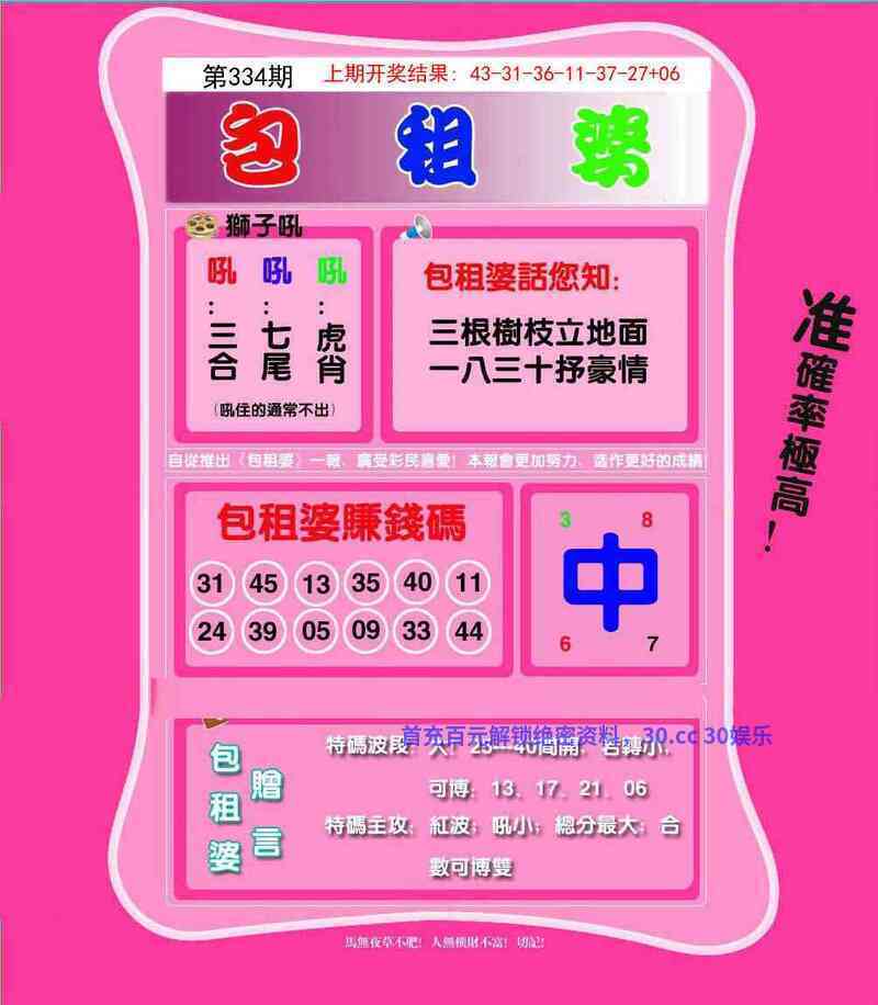 333期:单双中特☛☛☛【双双双】☚☚☚开:鼠06中